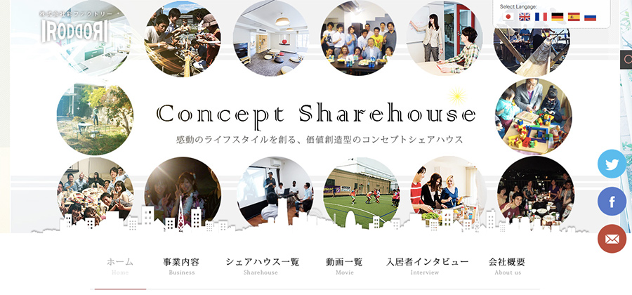 コンセプト型シェアハウスの運営・管理をする会社、 (株)彩ファクトリー様の公式サイトを担当させていただきました。 多言語に対応しているのがミソで、 管理画面からシェアハウスの入居状況なども手軽に変更できる造りになっています。 wordpressにて制作。